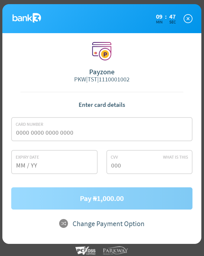 Receive payment with ease and fast using Bank3D Standard by making a post request to the payment endpoint. When the API is called a response containing paymentUrl is returned, do a page redirect to the paymentUrl returned which prompts a secure checkout model. Your customer is then required to fill in their details and click on complete payment.